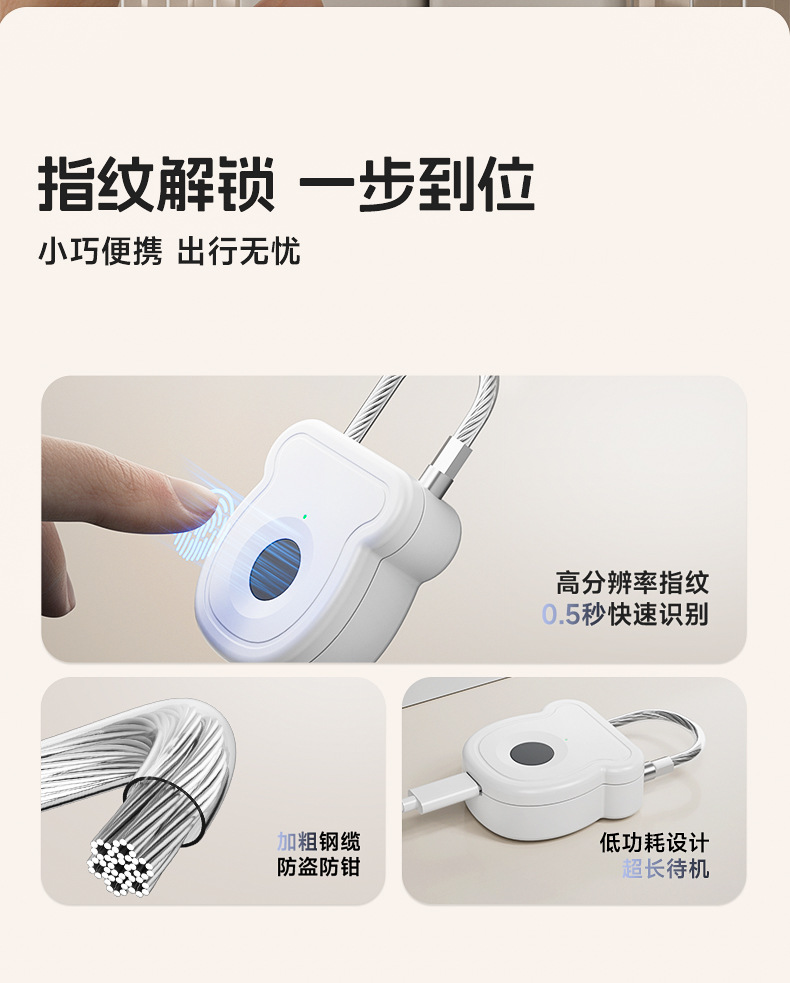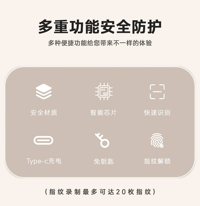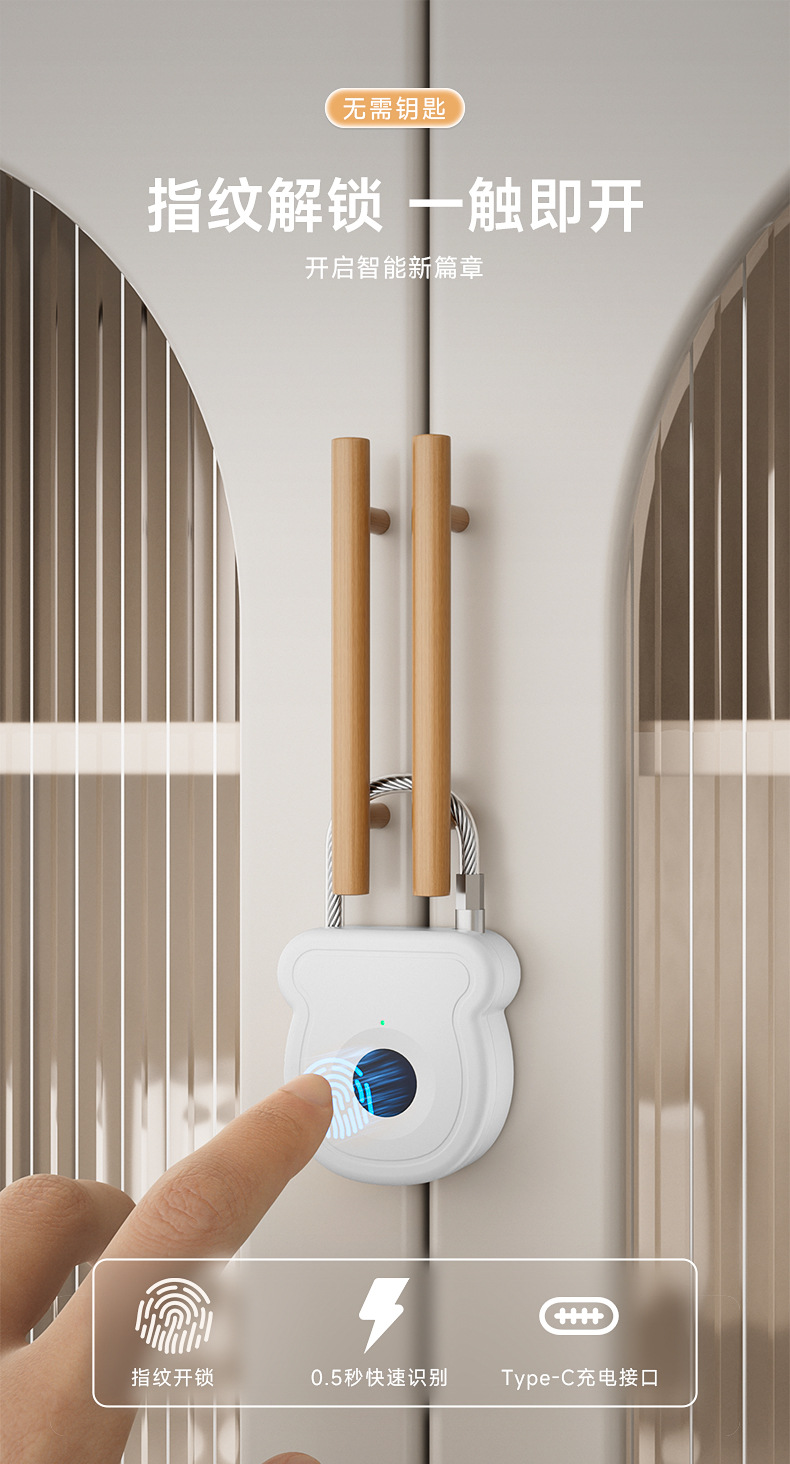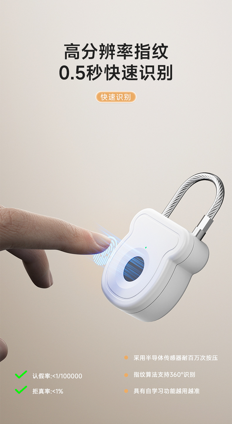 智能指纹挂锁户外行李箱指纹锁不锈钢门橱柜挂锁财务背包指纹挂锁