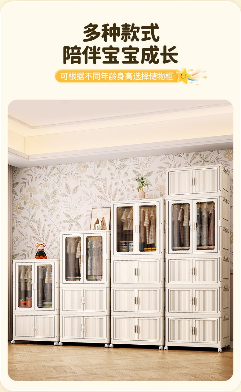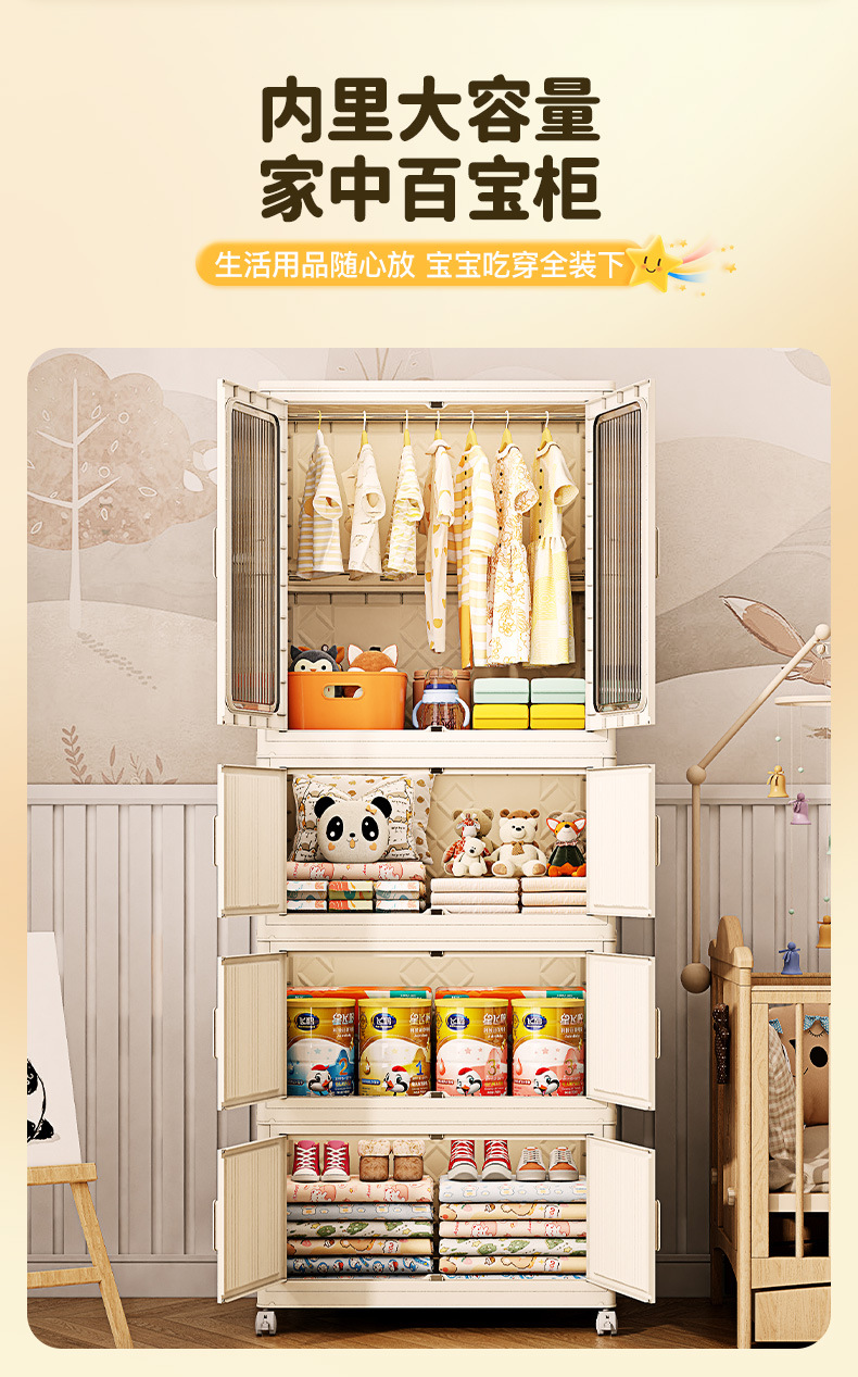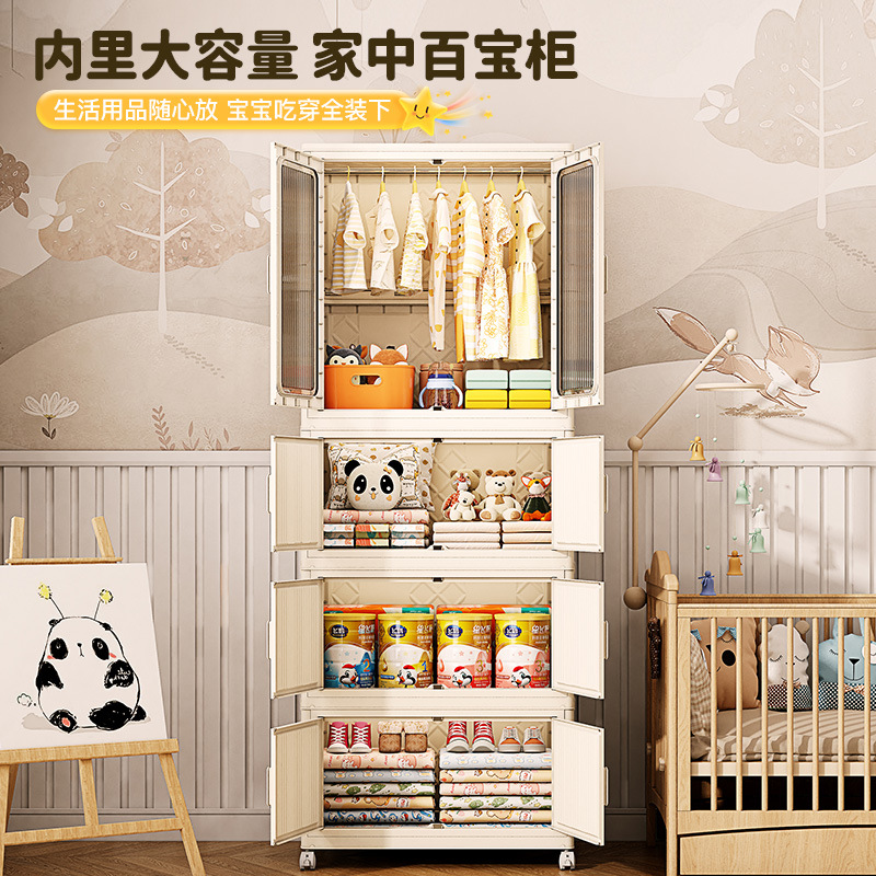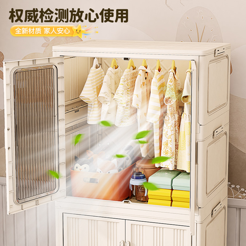 家用宝宝衣柜卧室儿童衣服挂衣式收纳柜折叠塑料储物柜简易小衣橱