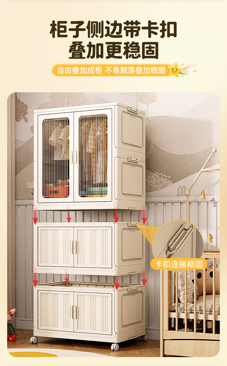 ベビー用ワードローブ 寝室 子供服 ハンガー収納 折りたたみプラスチック収納キャビネット 簡易小型ワードローブ